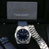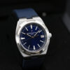 This is a 40mm model that has a stunning sunburst satin finished lacquered blue dial, date window at 3 o’clock and a stainless steel case and bezel.